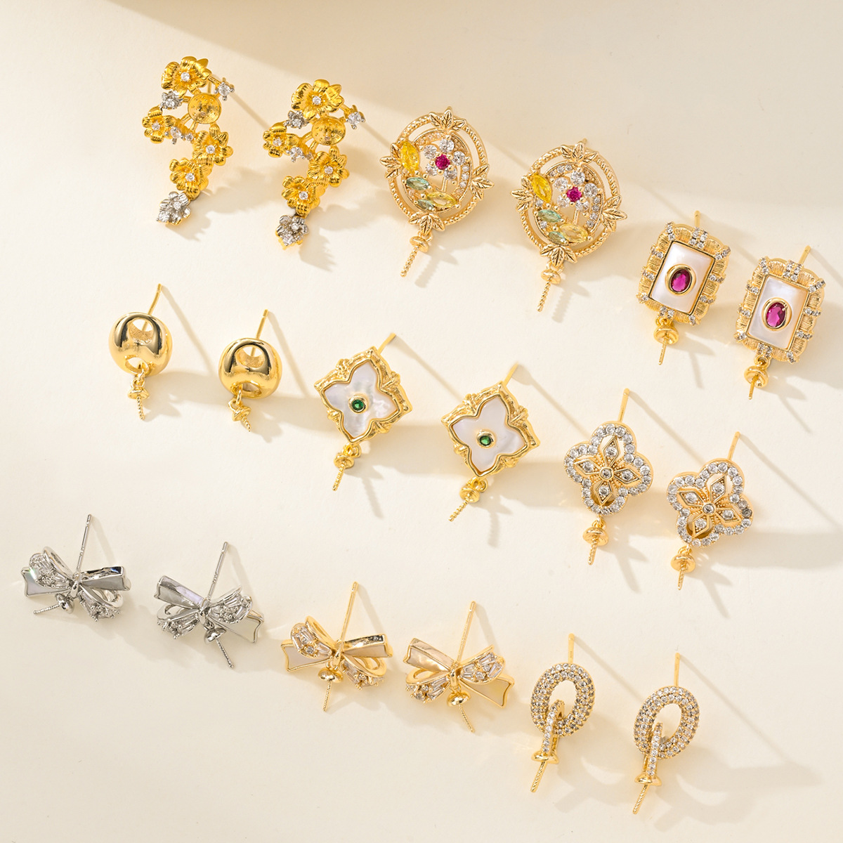 軽い豪華な耳飾りの半製品のアクセサリーの銅はジルコンの幾何学の形のイヤリングの高級感の個性の小さい大衆のイヤリングの女性を入れます。