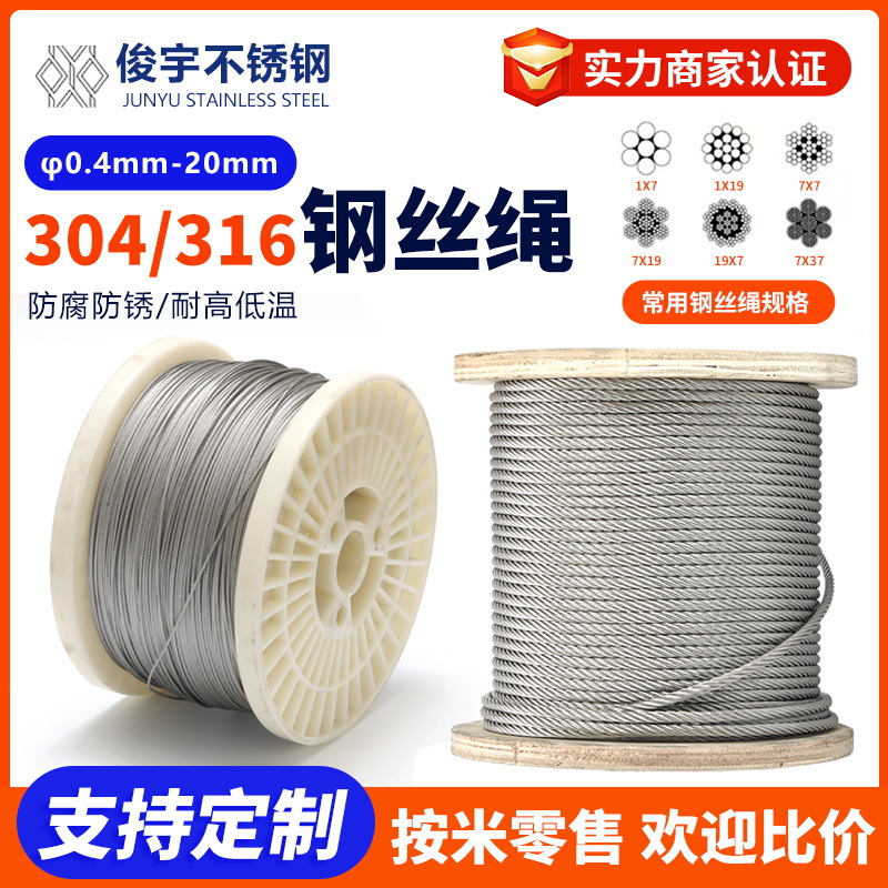 304ステンレスワイヤロープ7*7-7*19物干し用ワイヤロープクレーンのタワークレーン牽引304ワイヤロープ