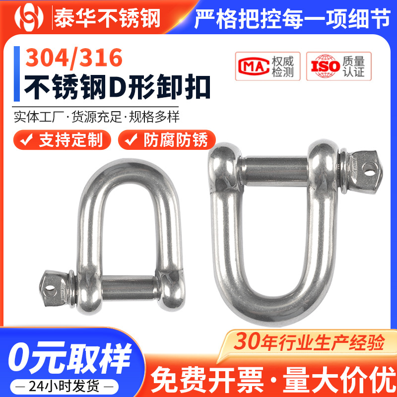 泰华 国标304不锈钢日式D形卸扣 船用连扣U型起重马蹄扣 D型卸扣