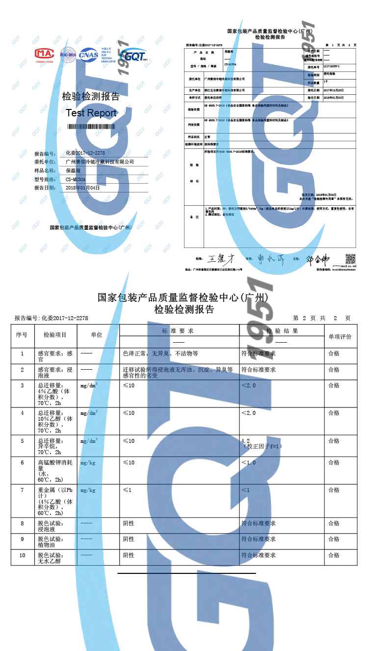 9.采用自主研发的多温度段蓄冷及低温冷藏技术 , 提供更理想蓄冷效果 , 达到超长的保温时间 ;