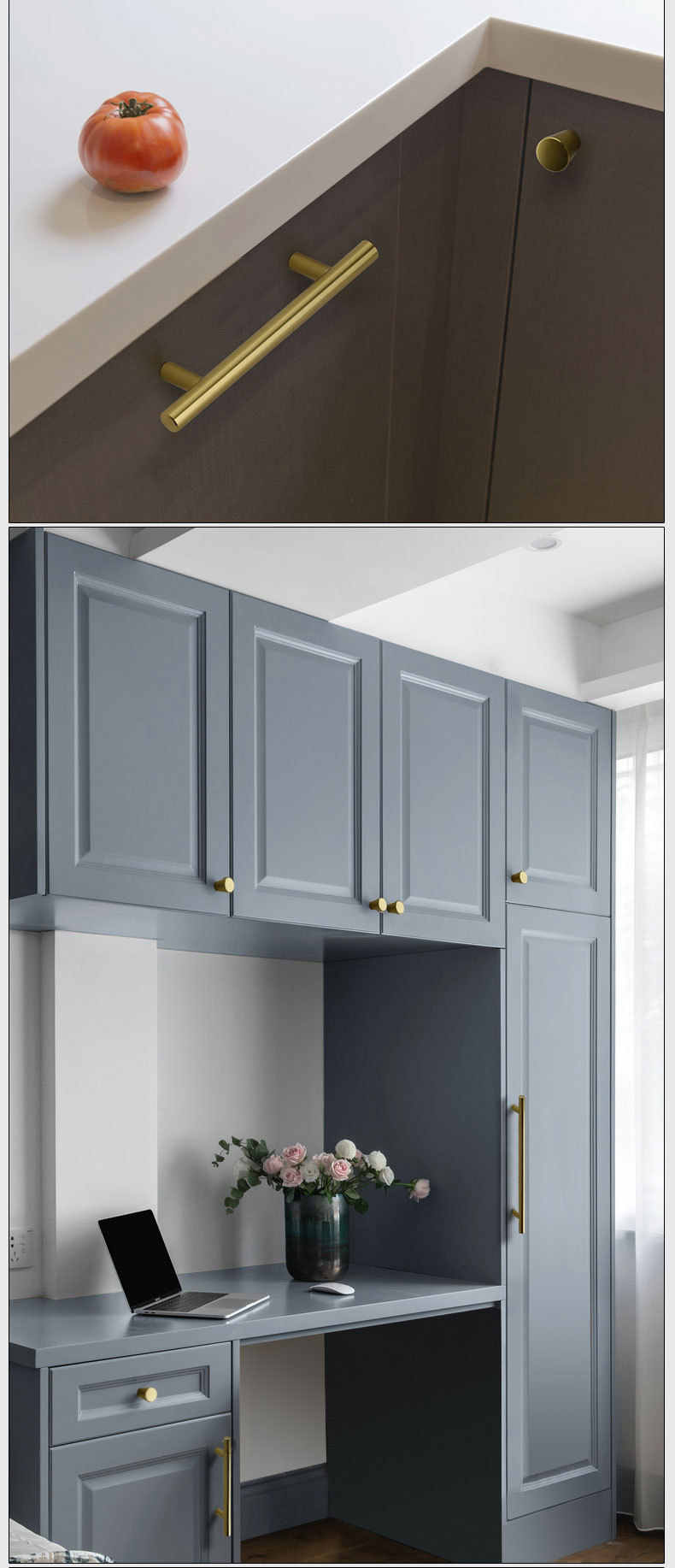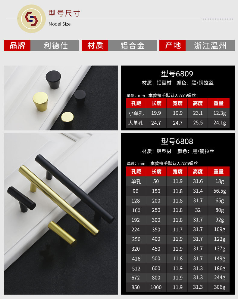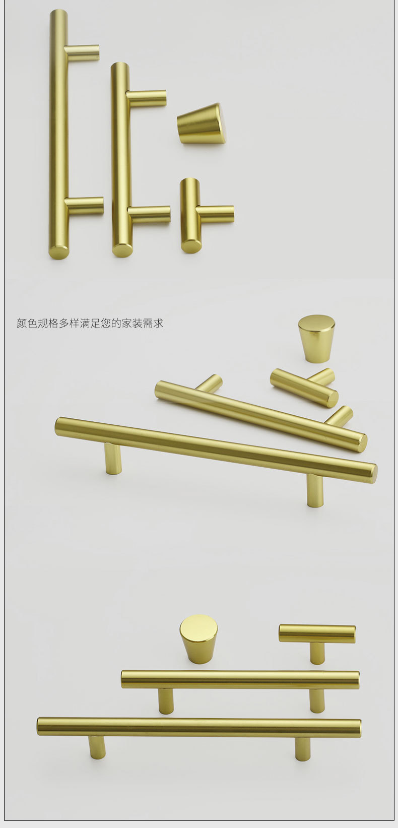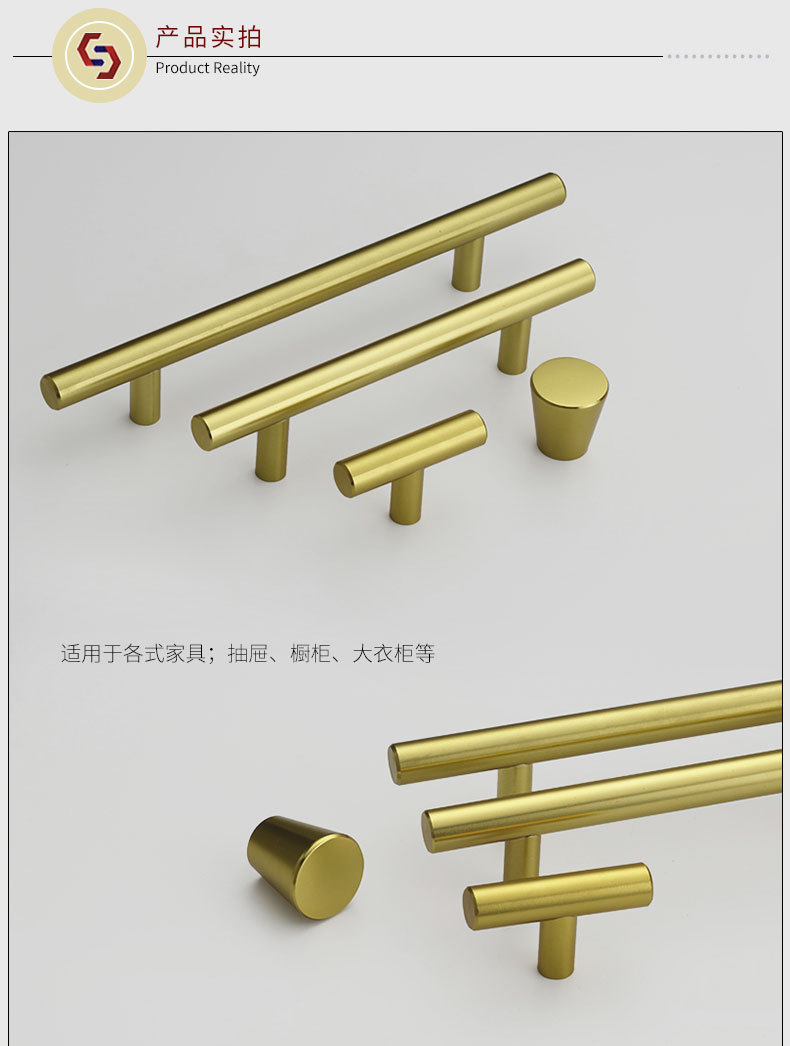 美式不锈钢衣柜门橱柜门拉丝色黑色拉手现代简约抽屉白色金色把手