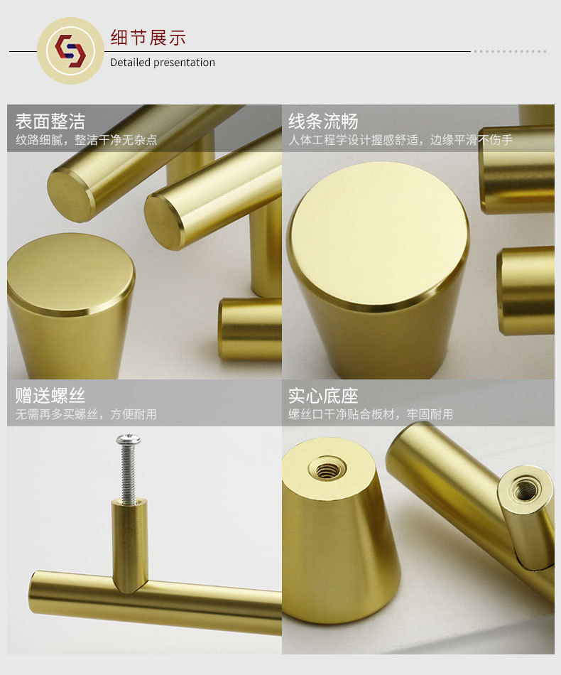 メーカー直販北欧軽豪華真鍮キャビネットドア取っ手引き出しキャビネットキャビネットキャビネットシンプルフランス金色シングル穴取っ手