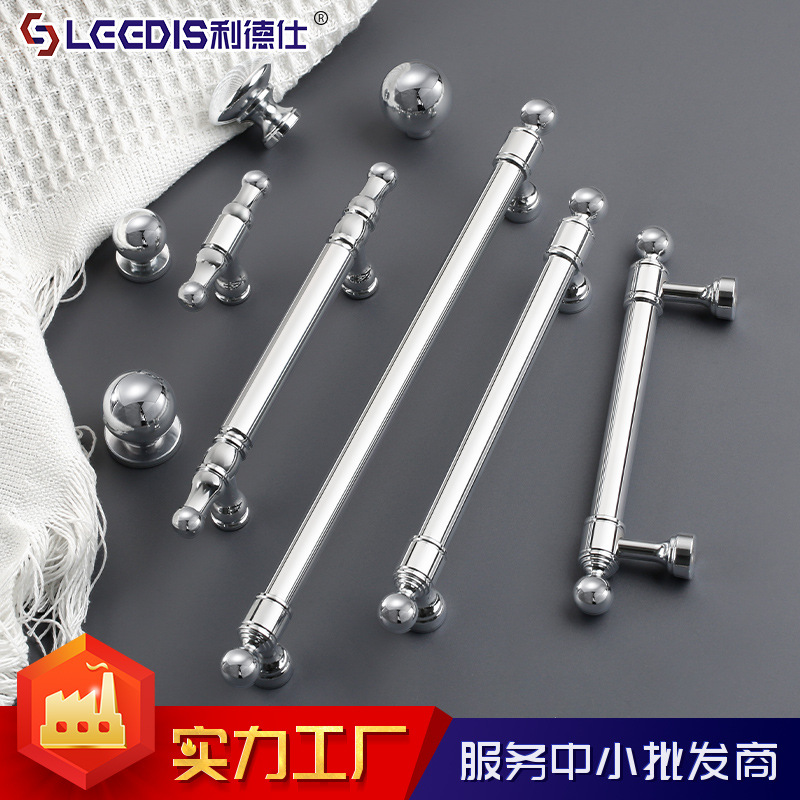 メーカー直販フランスクロムメッキ銀色キャビネットドアハンドル現代シンプル引き出し明るい銀キッチン真鍮ハンドル