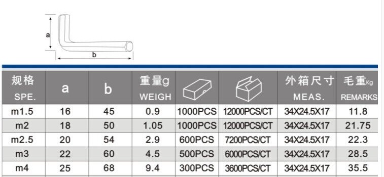 加硬内六角扳手 钢制,对边1.5mm--4mm,适配各类微型机米螺丝,各类内六角螺丝。