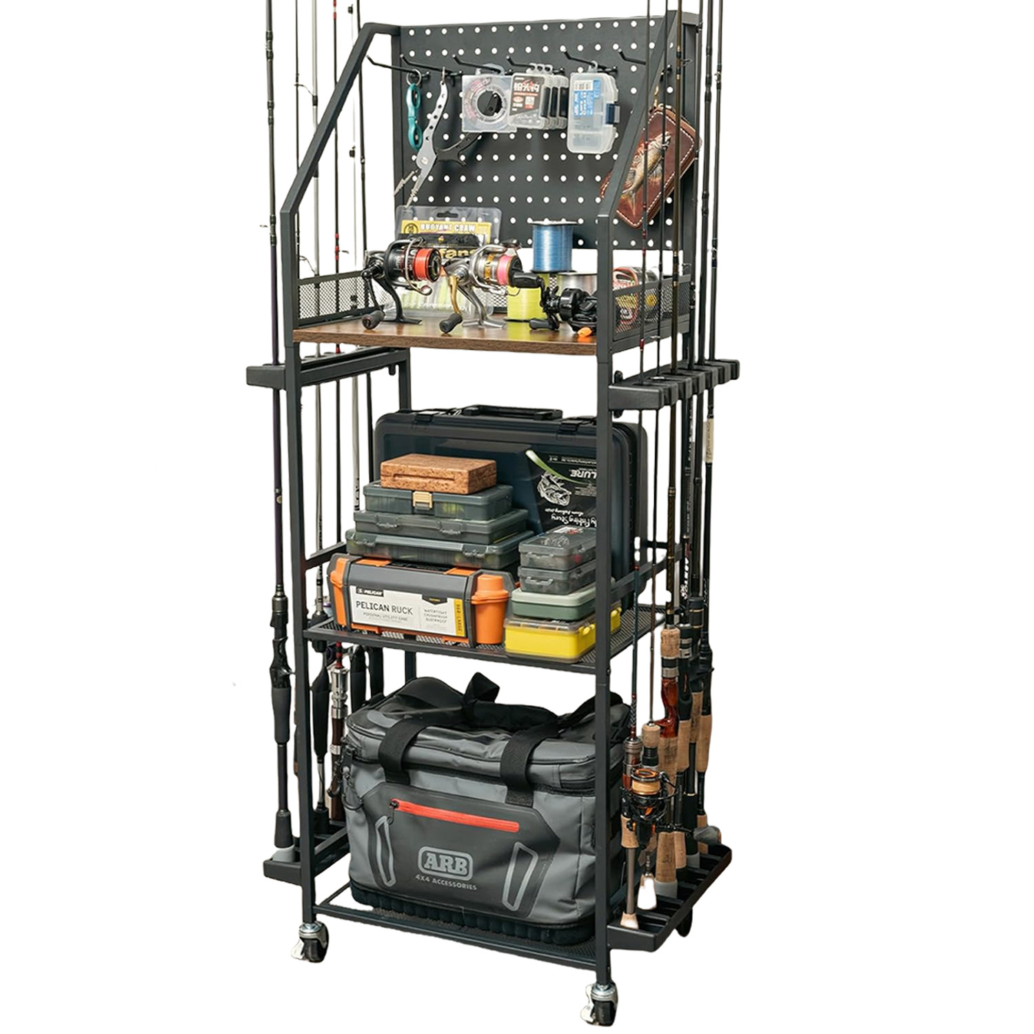 亚马逊多功能钓鱼竿收纳架多层储物架工具钓具箱卷轴存储的钓鱼车