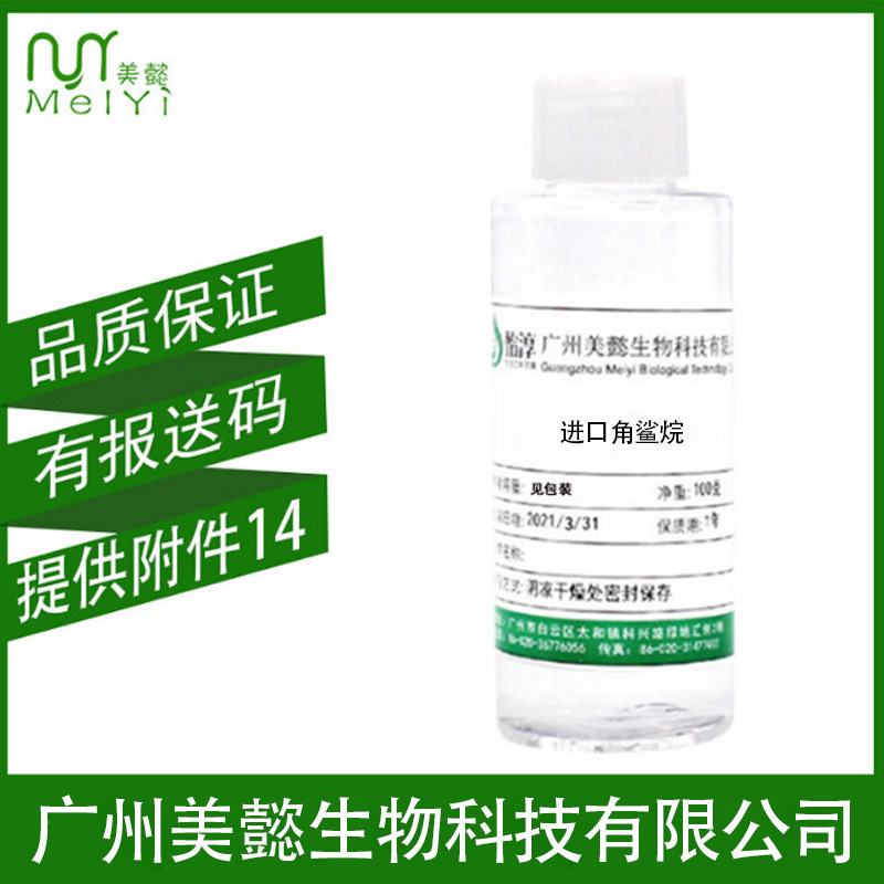 角鲨烷(Squalane)是从深海鲨鱼肝脏中提取的角鲨烯经氢化制得一种性能优异的烃类脂,故又名深海鲨鱼肝。科学研究发现,角鲨烷是少有的化学稳定性高,使用感好的动物脂,对皮肤有较好的亲和性,不会引起过敏和刺激,并能加速配方中其他活性成分向皮肤中渗透;具有较低的极性和中等的铺展性,且纯净、无色、无异味;还可抑制霉菌的生长。
