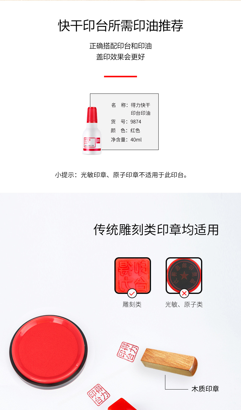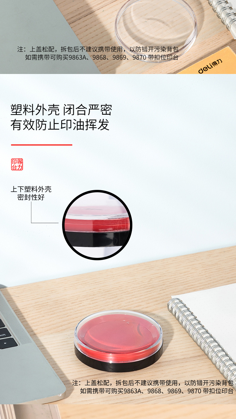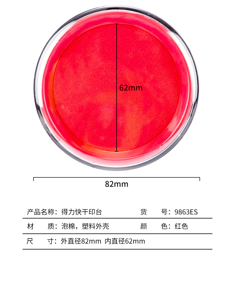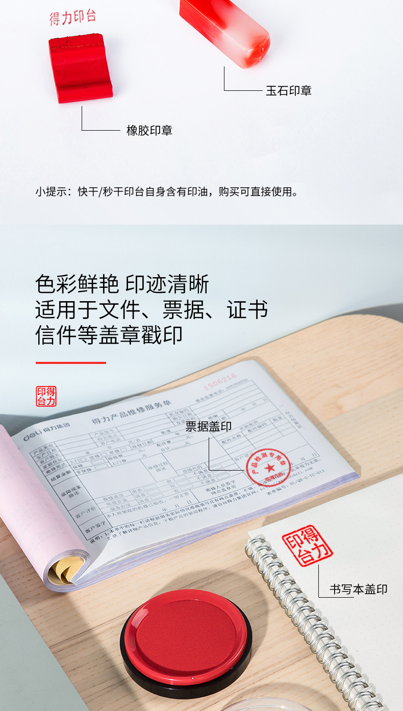 得力9863es印台円形大サイズ速乾印泥事務財務赤色インドネシア印鑑泥卸売り