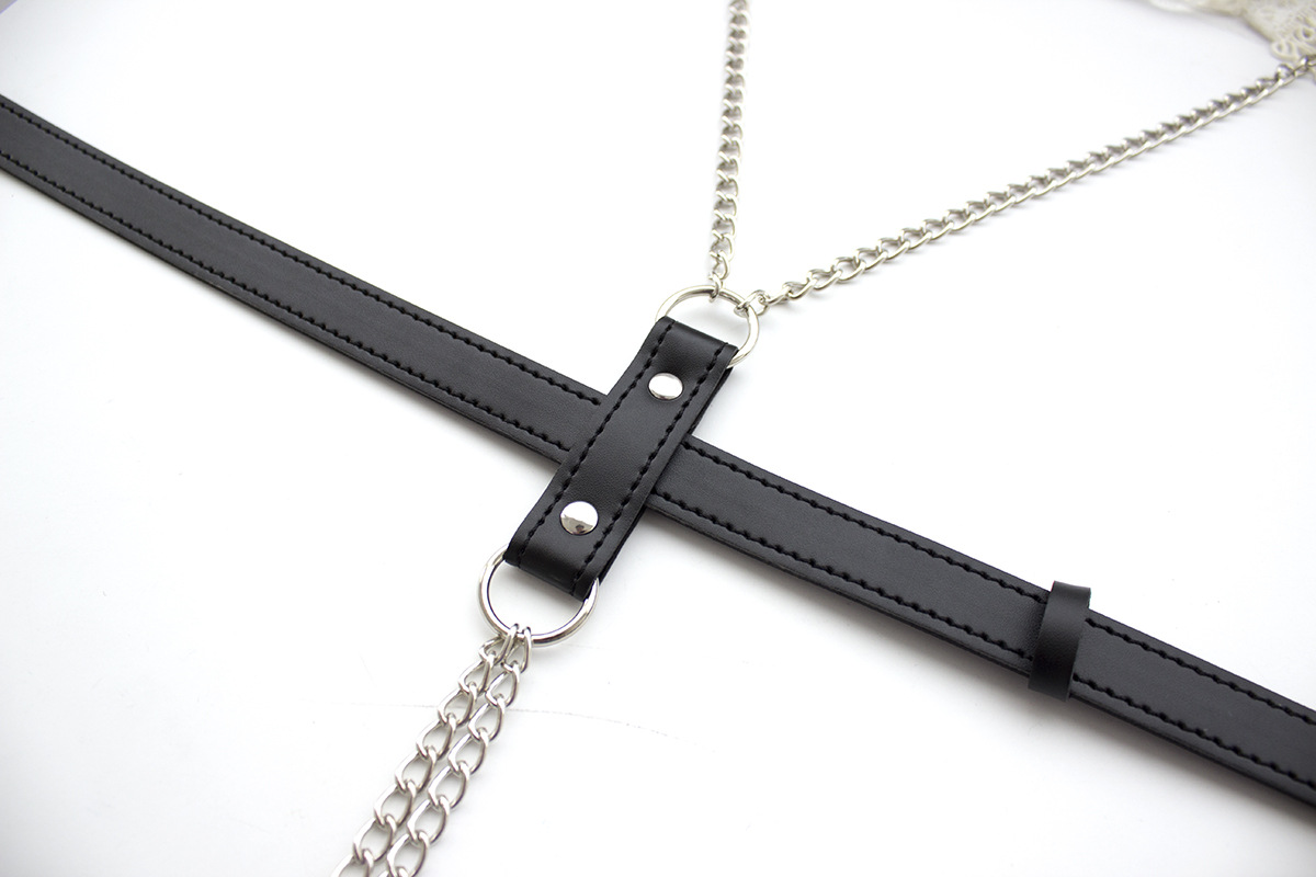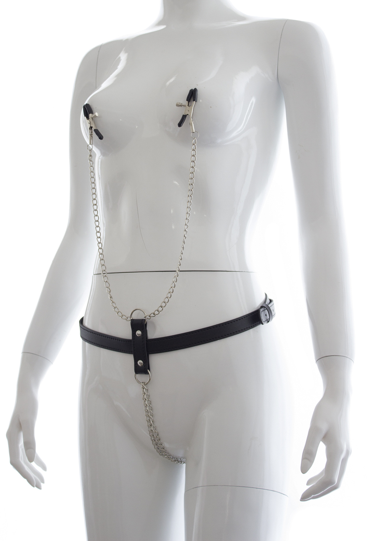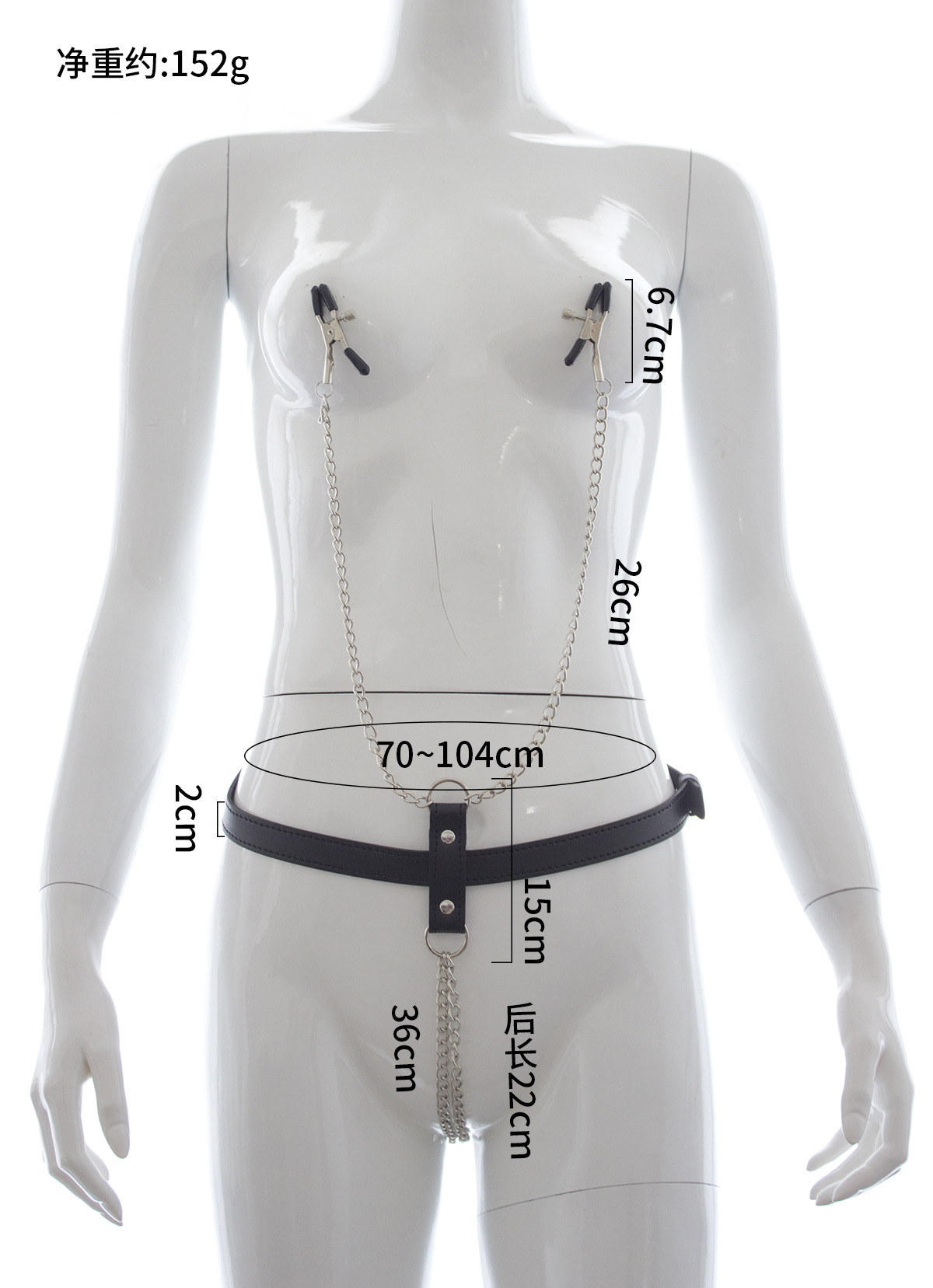 仕様 短乳クリップjjリング,ニップルクランプ付きブラックレザーチェーンパンティー
