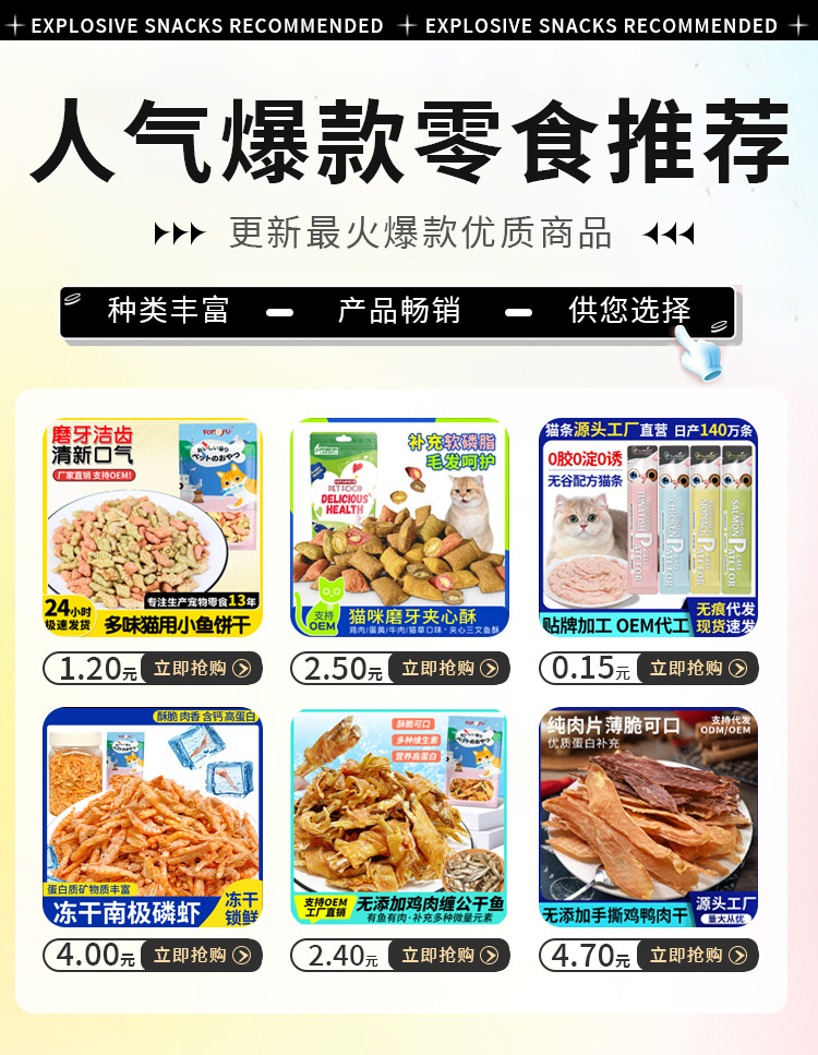 もとの工場の商品の供給源はペットの食品の猫の間食の鶏肉のまぐろの猫のミントを卸売りして歯をきれいにします。