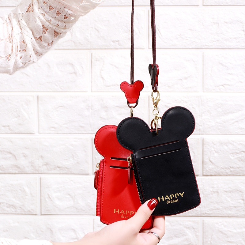 2025年新作 ミニレディースIDカード/社員証ケース ハンギングストラップ付き 小銭入れ付き 1214バスカードケース ミッキーカードホルダー