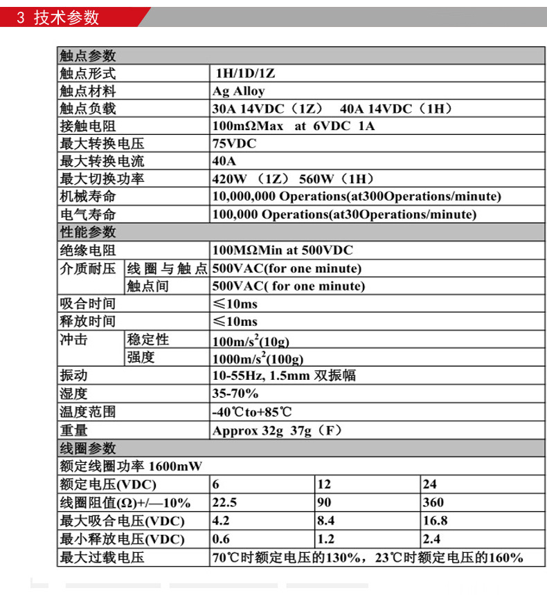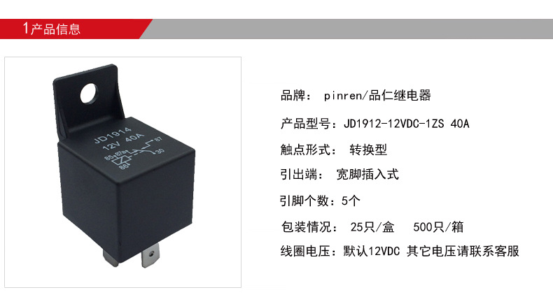 規格型番 12VDC * 一開一閉 * 1A * 40A * jd 1914