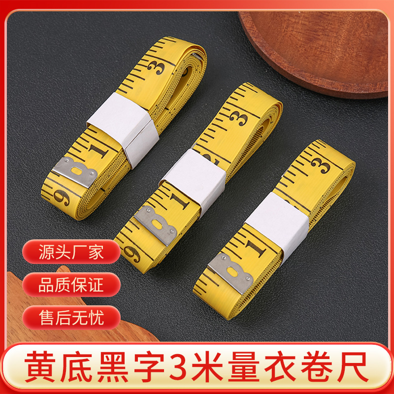 3メートル皮尺pvc繊維尺裁縫尺量衣尺軟皮尺300センチ120インチ携帯巻尺黄色