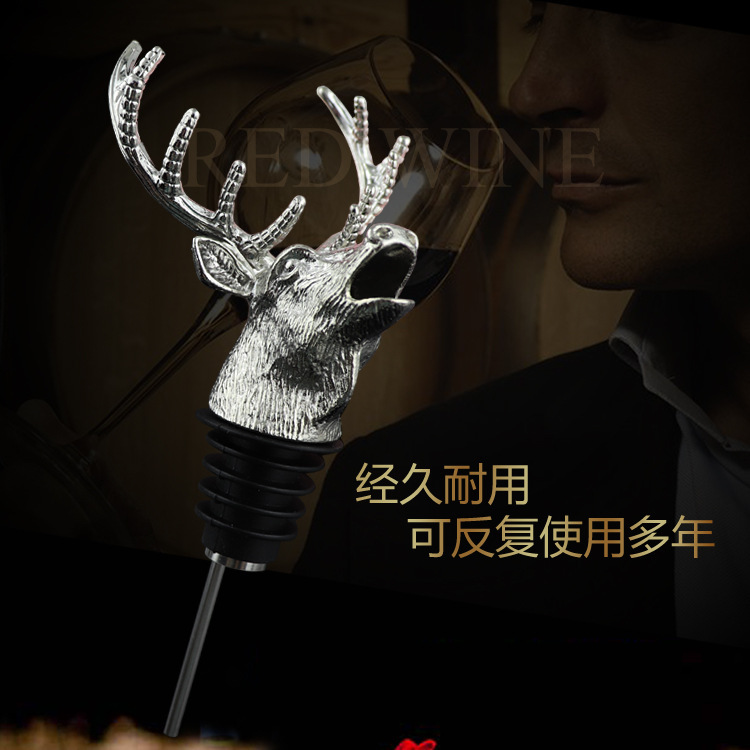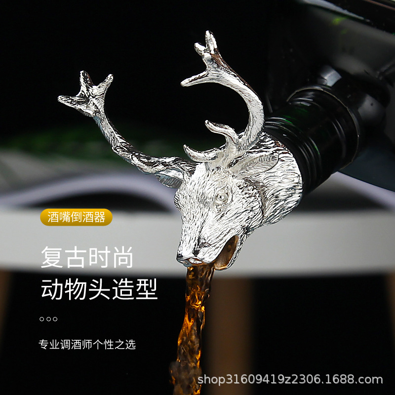 野格聖鹿引酒器亜鉛合金酒口創意動物鹿頭倒酒器家庭用ワインボトル栓バー