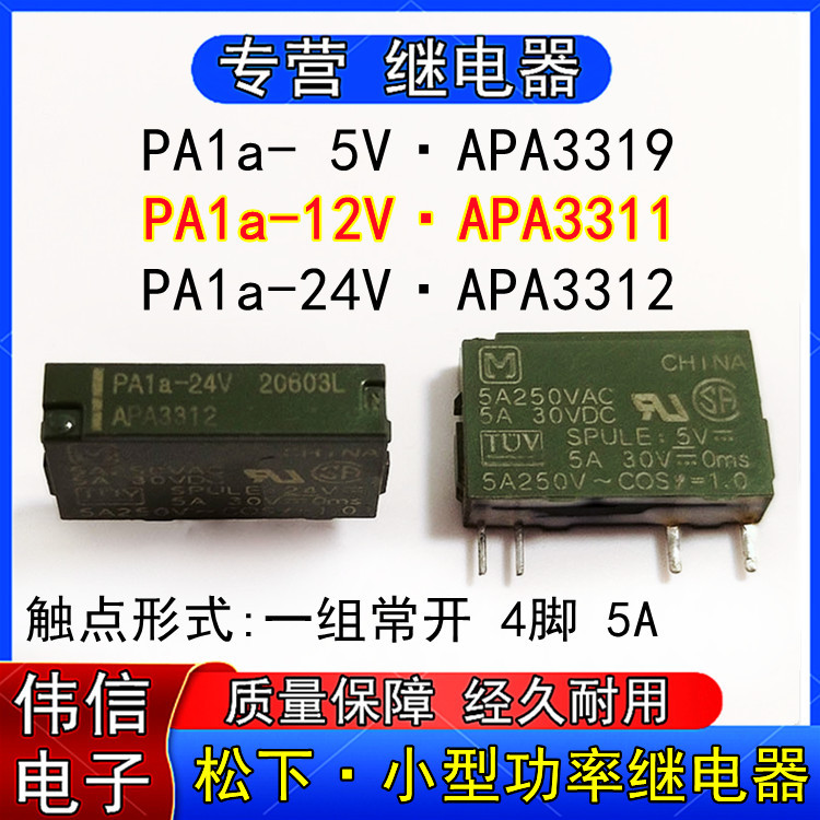 PA1A-5V PA1A-12V PA1A-24VDCパナソニックリレーapa3311 apa3312 apa3319