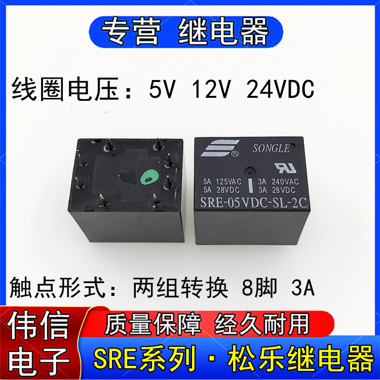 SRE-05VDC 12v 24v dc-sl-2c松楽リレー2セット変换8脚3a 240vac