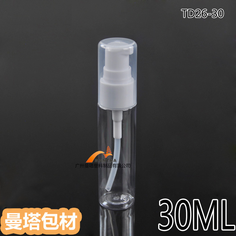 30ml 50ml petプラスチック透明瓶と白色フルカバーローション瓶化粧品包装材の現物