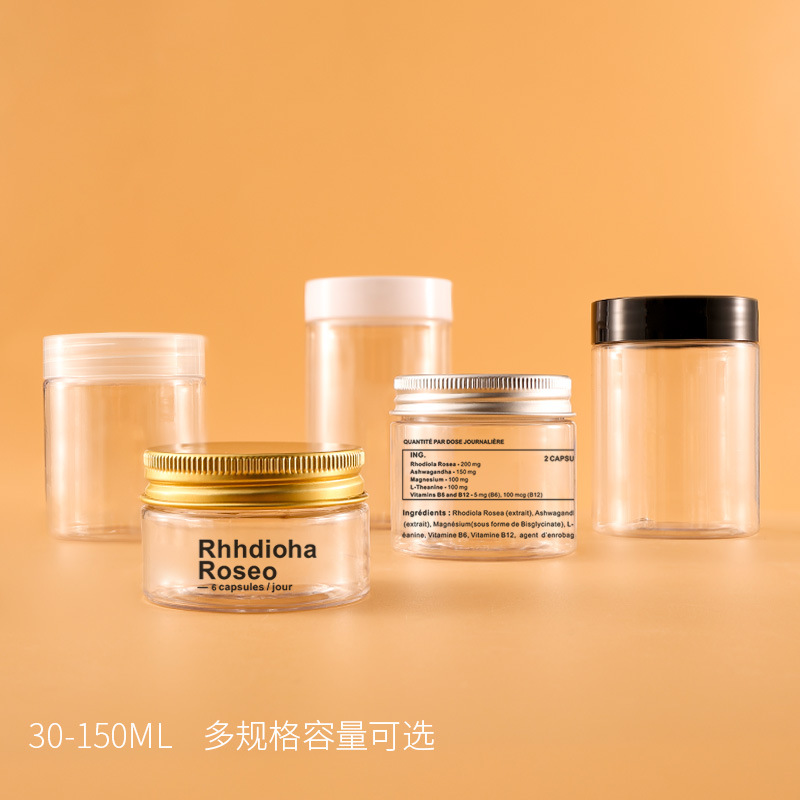 スポット100gから500gまでの広口瓶PET透明クリーム缶食品包装缶大広口分注缶