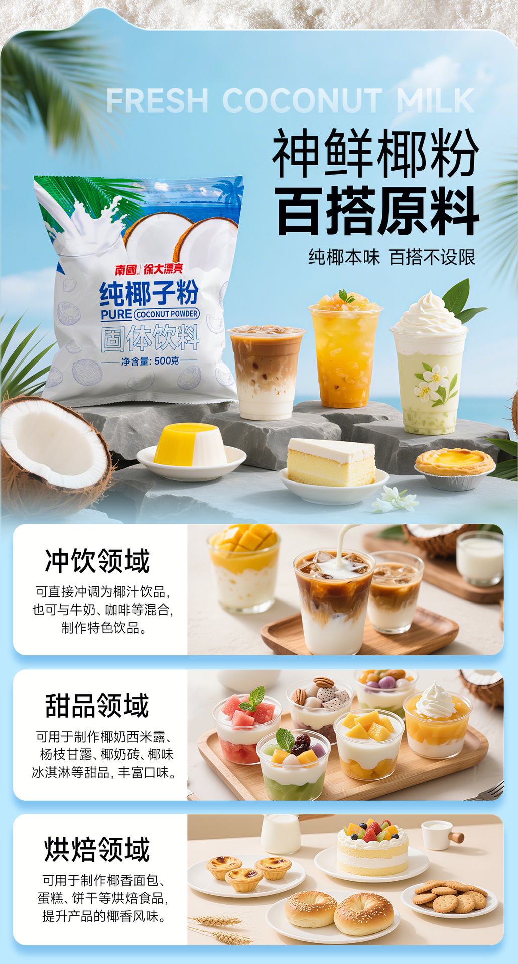 Nanguo ピュアココナッツパウダー 1000g ココナッツミルクとココナッツジュース ケータリング工場 マルチパック ココナッツピューレパウダー 業務用ココナッツジュースパウダー