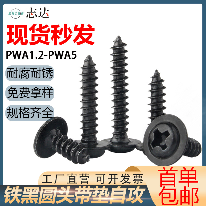 黒色炭素鋼丸頭パッド付きセルフタッピングネジ 十字穴付き皿頭ネジ 卸売 PWA1.2PWA5