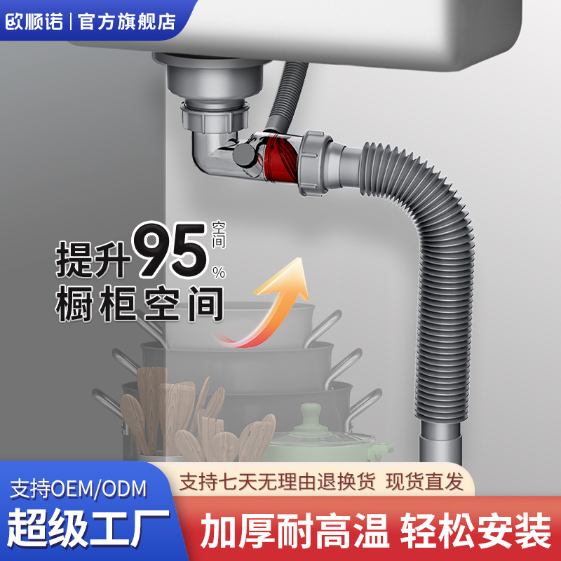 洗面台排水管、洗面台パイプ、防臭排水管、接着剤不要の洗面台、クイック取り付け、水平・垂直両用排水管