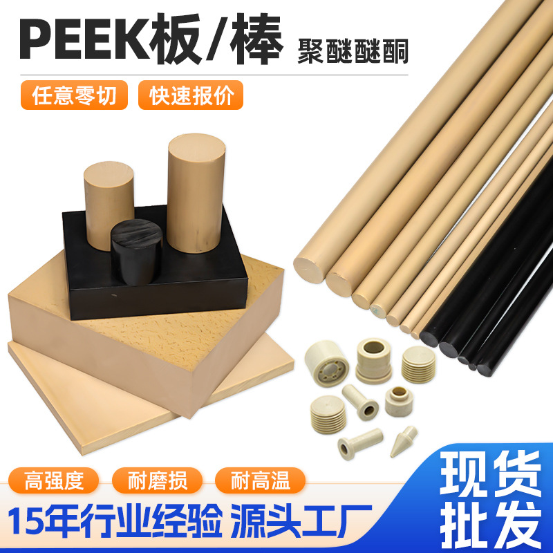 卸売りPEEK板棒耐高温帯電防止耐摩耗性ポリエーテルエーテルケトン板黒色地色加繊維peek板棒