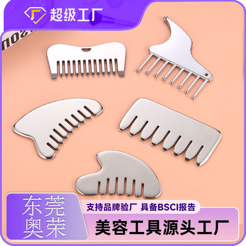 厂家批发不锈钢羊角梳子刮痧片304按摩器锌合金脸部按摩面部美容