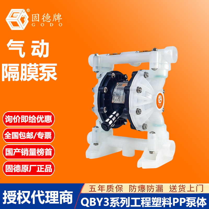 代理销售边锋固德牌气动隔膜泵QBY3系列工程塑料耐腐蚀边锋隔膜泵