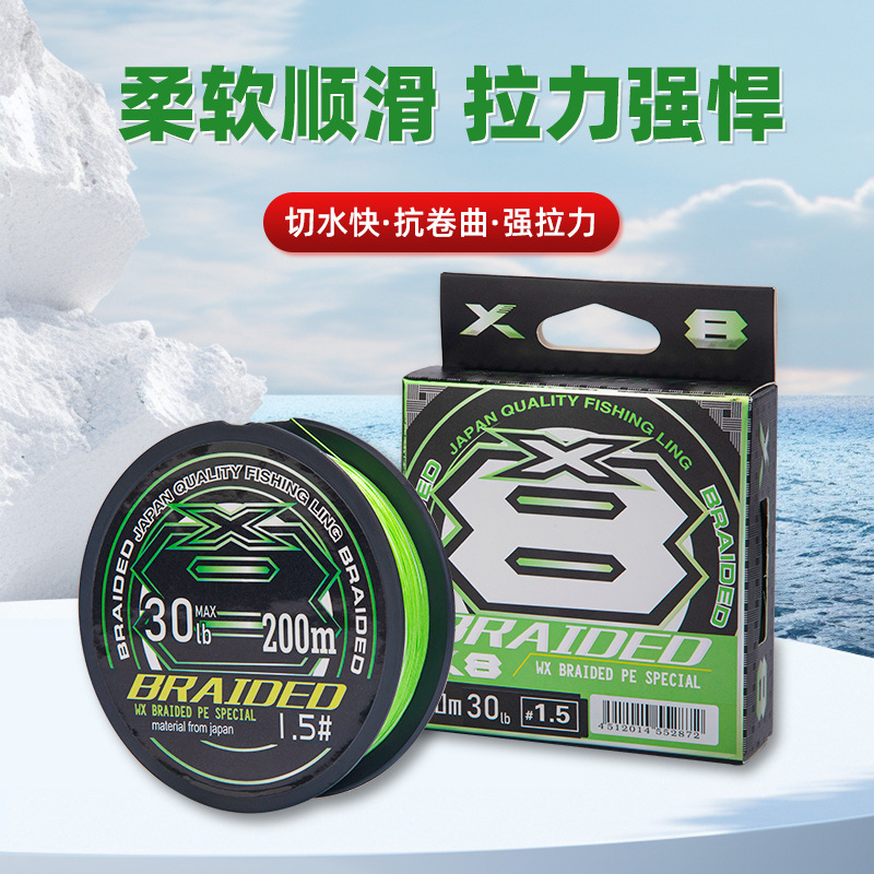 分析:同样的号数,4编是由4股细线编成,8编是由更细的8股线编成,都知道,线的粗细和拉力成正比,越粗拉力越大。但是一个是8股,一个是4股,所以只能通过机器测试了,而测试结果参数相差不大,是以8股拉力略高