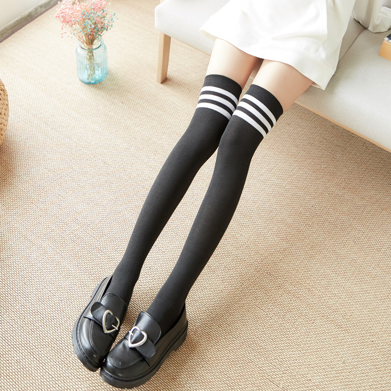 可以拉长到大腿三分之一,比普通过膝袜长一些