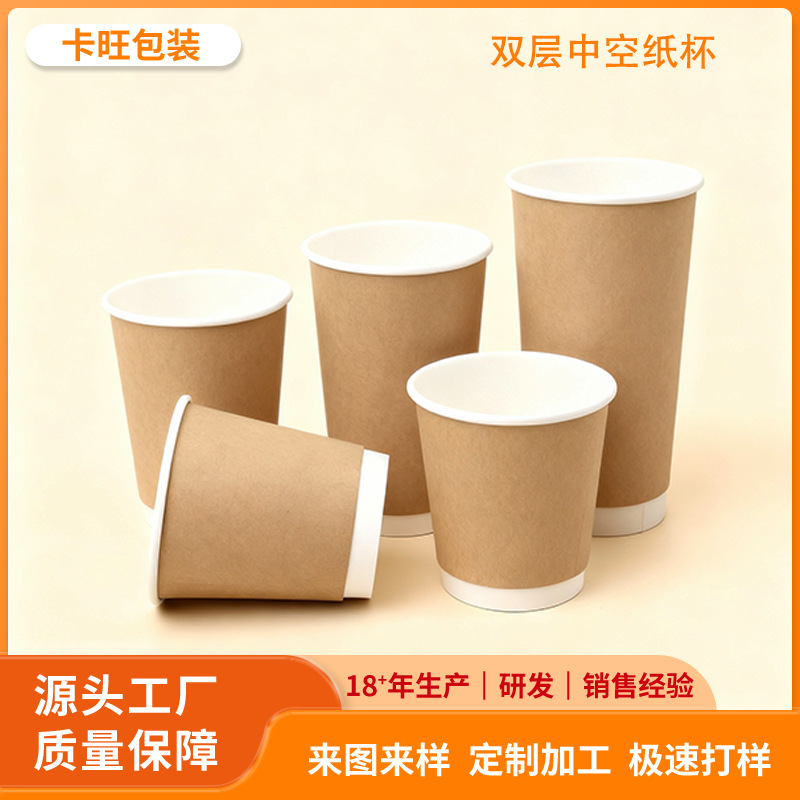 一次性纸杯加厚双层加印logo多规格中空隔热咖啡奶茶商用外带打包