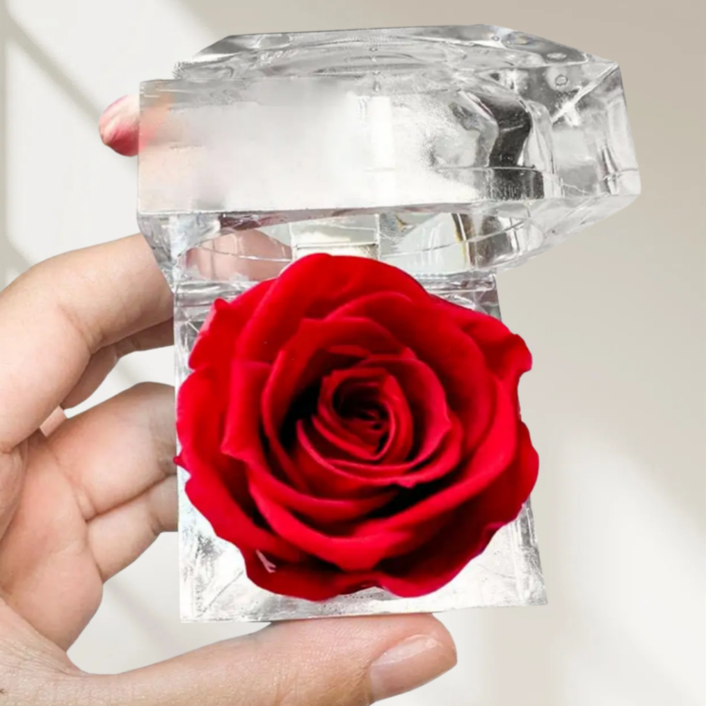 永生花成品玫瑰七夕情人节活动款亚克力戒指盒生日礼物送女友批发
