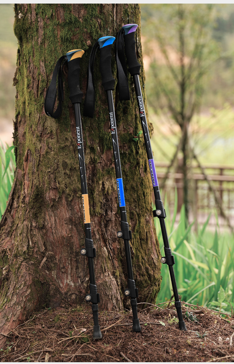 户外铝合金登山杖伸缩外锁拐杖三节避震徒步爬山手杖厂家直销