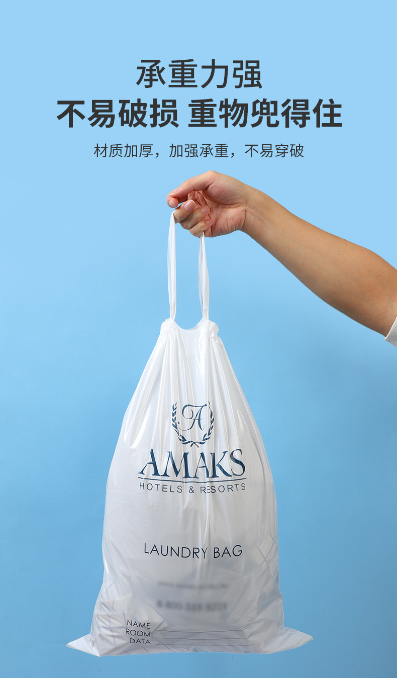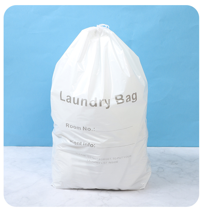 ホテル使い捨て洗濯袋ホテル客室汚れた服袋巾着式プラスチック洗濯袋カスタム印刷ロゴ