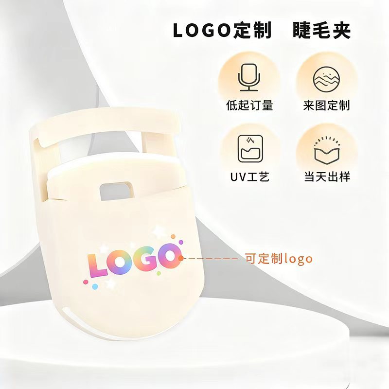 UV印刷可能なカラーロゴ柄ミニタイププラスチック製まつげカーラー 携帯用まつげカーラーツール
