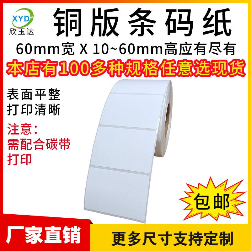 温馨提示:铜版不干胶标签需要配碳带(色带)打印,热转印标签打印机可以使用,热敏打印机不能用,请确认清楚再拍,如不懂请联系客服,了解宝贝,避免不必要的损失