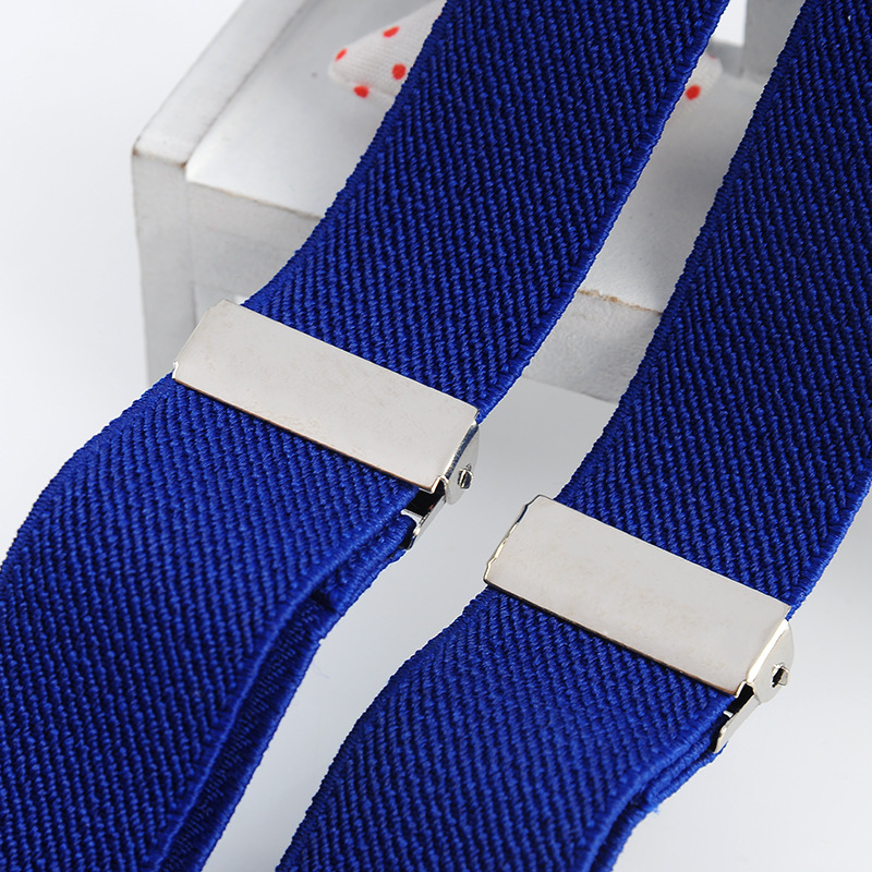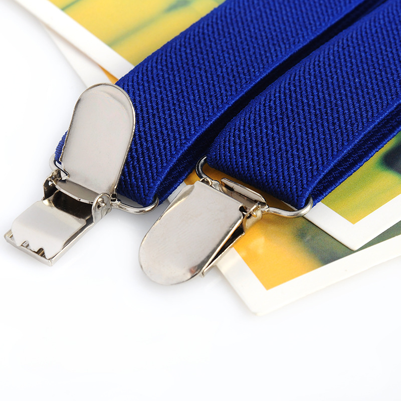 英国風ブルーのサスペンダー、男女兼用、汎用性の高い2.5cm幅のY型サスペンダー、伸縮性のあるサスペンダー、カジュアル
