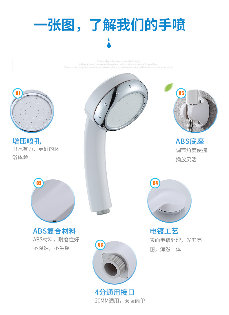 シャワースタンド固定型ブラケット形活動調節可能ノズル実用白色pp卸売り