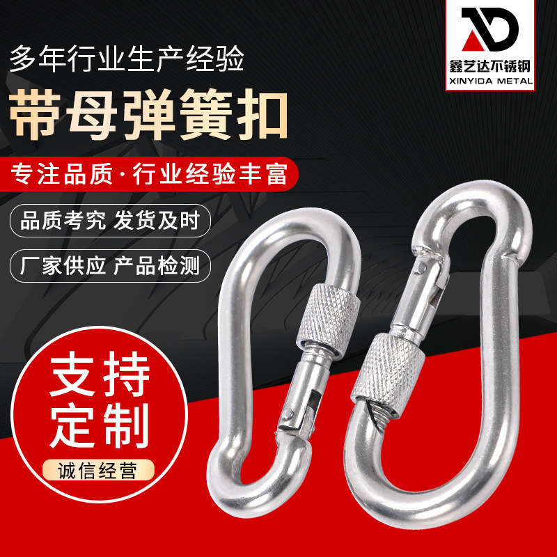 簡易スプリングバックル、クイックリリースバックル、ステンレス製フラットヘッド、簡易カラビナ、スプリングフック、リフティングバックル