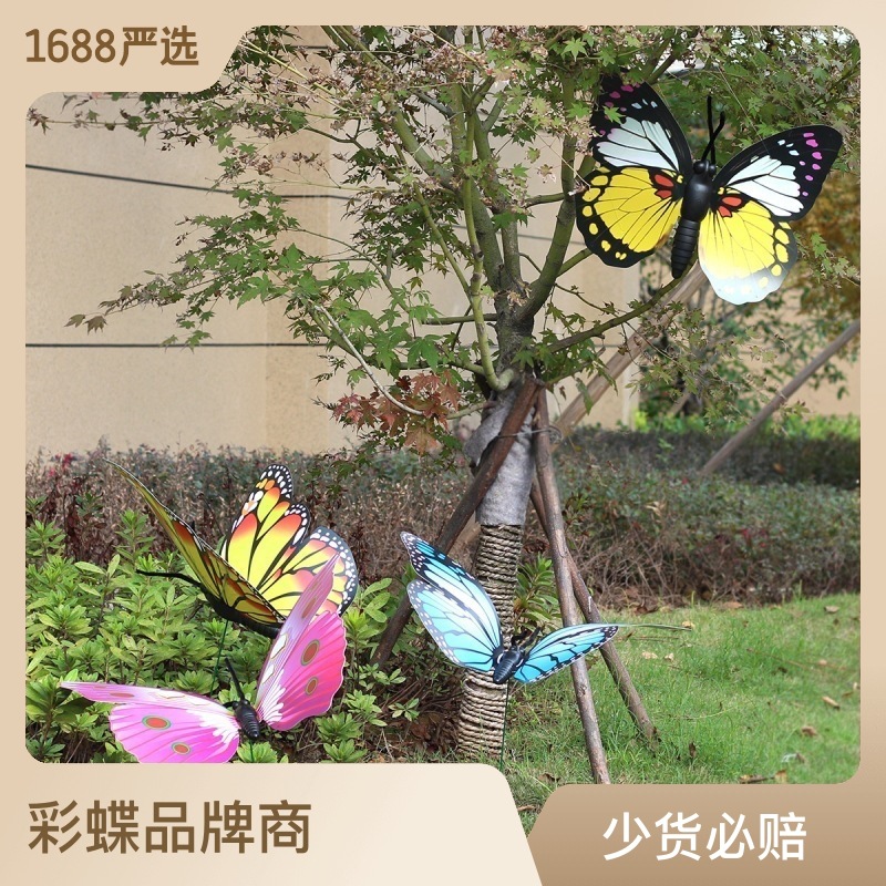 3dシミュレーション蝶挿し棒混色二重立体挿し棒プラスチック蝶園林装飾創意場の配置