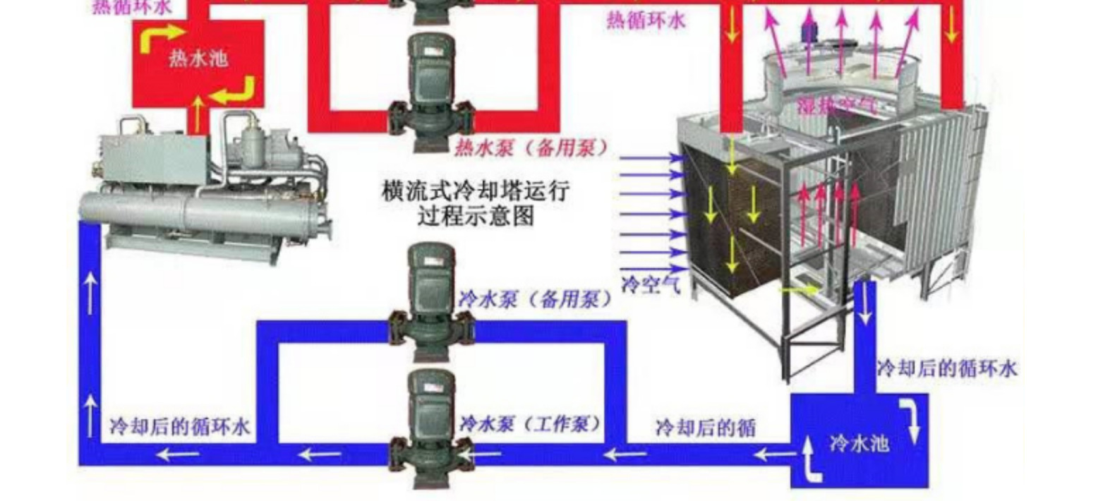 お湯と空気の流れ方向 横流(交流)式冷却塔