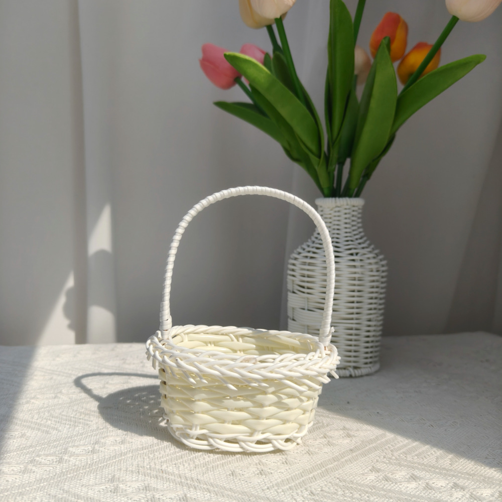編み込みフラワーバスケット、籐編み収納フラワーバスケット、竹編みバスケット、小道具、手持ちフラワーバスケット、子供用小さなバスケット