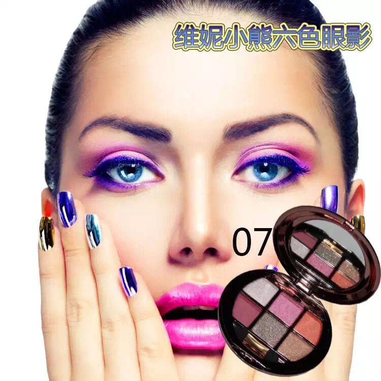 厂家直供维妮小熊轻奢幻色六色闪钻珠光眼影盘6色哑光眼影盘专供