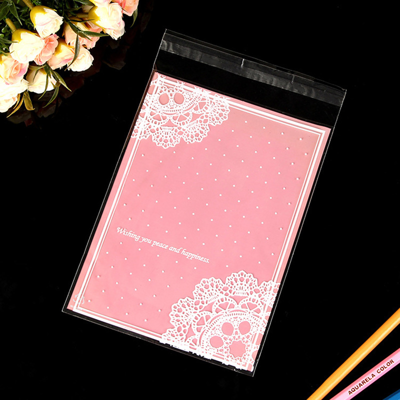 メーカー直供焙煎包装ピンクレース辺手作りビスケットパン菓子キャンディーopp自己粘着自己封止袋