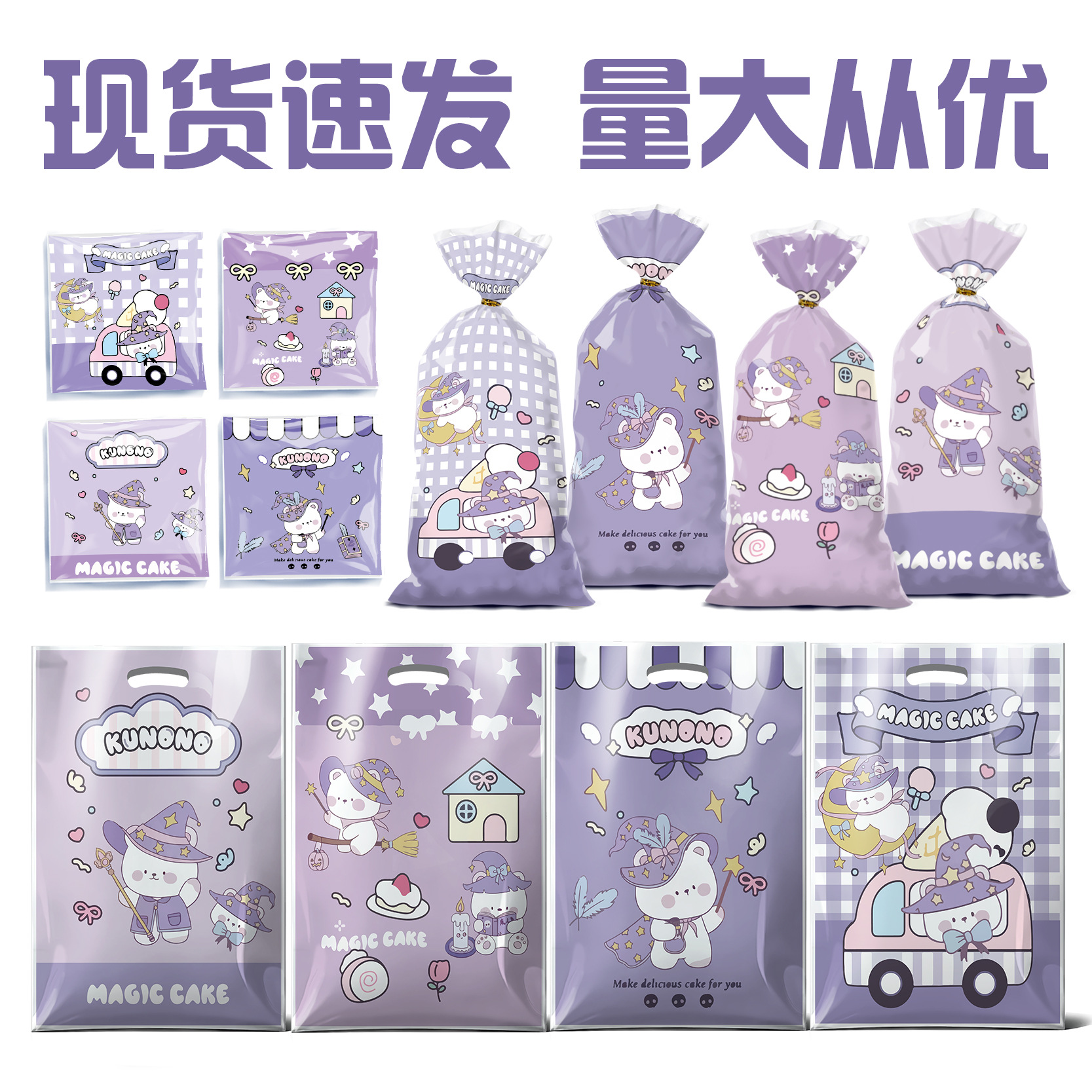 跨境紫色卡通动物塑料薄膜袋糖果雪花酥印花手提袋节日礼品包装袋