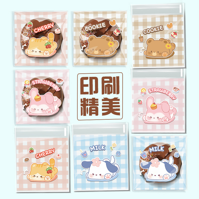 オリジナルの自封包装かわいいアニメ透明自粘パン袋あんパン焙煎スライストースト全麦欧包