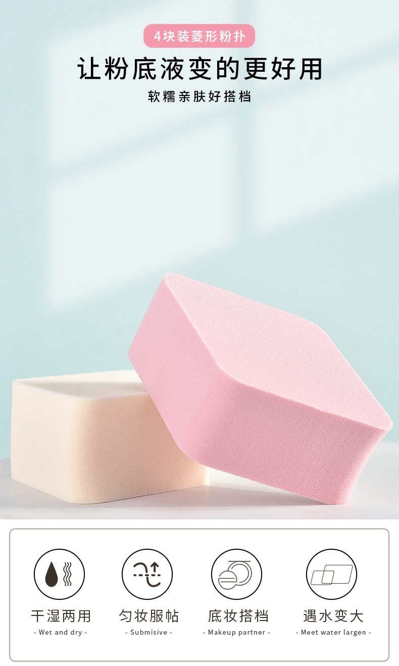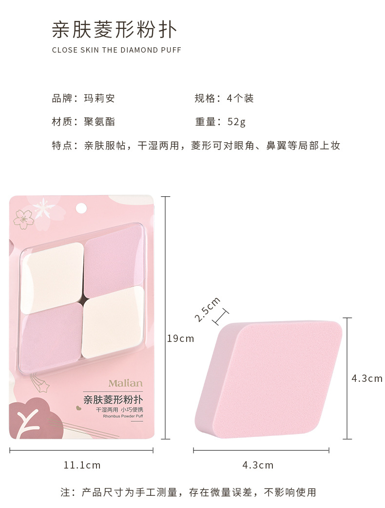 仕様 ダイヤモンド型パウダーパフ 4個入 P001