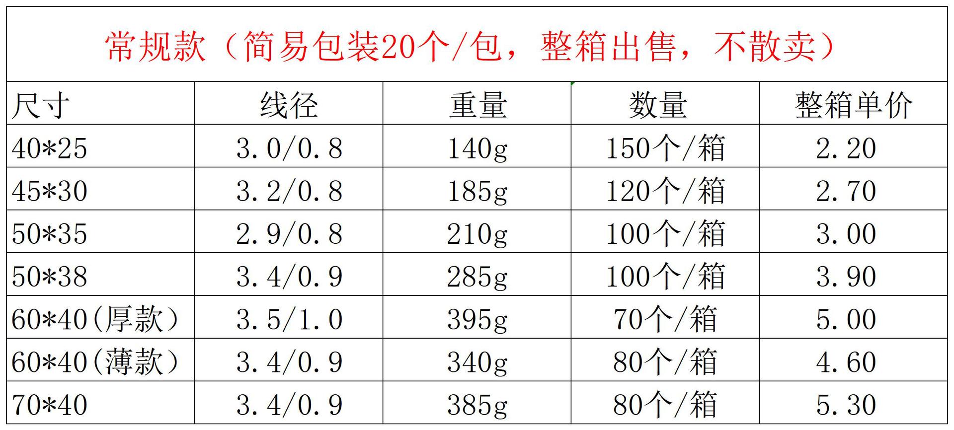 個別包装40*25(140g、150個/箱),個別包装45*30(185g、120個/箱),個包装 50*35 (205g、120 個/カートン),個包装 50*38 (285g、90 個/カートン),独立包装60*40(390g、70個/箱),個別パッケージ60*40(340g、80個/箱),(箱別販売) 独立包装70*40(385g、80個/箱),(箱別販売) 簡易包装40*25(140g、160個/箱),(箱別販売) 簡単装45*30 (185g、140個/箱),(箱別販売) 簡易50*35(180g、120個/箱),(箱別販売) 簡易50*38(285g、100個/箱),(箱別販売) 簡単装60*40(395g、80個/箱),(箱別販売) 簡単装60*40(340g、80個/箱),(箱別販売) 簡易包装70*40(385g、80個/箱),(箱別販売) 独立包装40*30(130g、160個/箱),(箱別販売) 独立包装50*25(135g、160個/箱),(箱別販売) 独立包装50*30(180g、120個/箱),(箱別販売) 独立包装60*25(160g、140個/箱),(箱別販売) 独立包装60*30(205g、100個/箱),(箱別販売) 独立包装70*25(205g、100個/箱),(箱別販売) 独立包装70*30(235g、100個/箱),(箱別販売) 独立包装80*25(235g、100個/箱),(箱別販売) 独立包装80*30(270g、80個/箱),(箱別販売) 独立包装80*40(330g、80個/箱),(箱別販売) 独立包装100*25(290g、80個/箱),(箱別販売) 独立包装100*30(325g、80個/箱),(箱別販売) 独立包装100*40(440g、60個/箱),(箱別販売) 簡易包装40*30(130g、160個/箱),(箱別販売) 簡易50*25(135g、160個/箱),(箱別販売) 簡易50*30(180g、120個/箱),(箱別販売) 簡易包装60*25(160g、140個/箱),(箱別販売) 簡易包装60*30(205g、100個/箱),(箱別販売) 簡易包装70*25(205g、100個/箱),(箱別販売) 簡易包装70*30(235g、100個/箱),(箱別販売) 簡易包装80*25(235g、100個/箱),(箱別販売) 簡易包装80*30(270g、80個/箱),(箱別販売) 簡易包装80*40(330g、80個/箱),(箱別販売) 簡易100*25(290g、80個/箱),(箱別販売) 簡易100*30(325g、80個/箱),(箱別販売) 簡易100*40(440g、60個/箱)