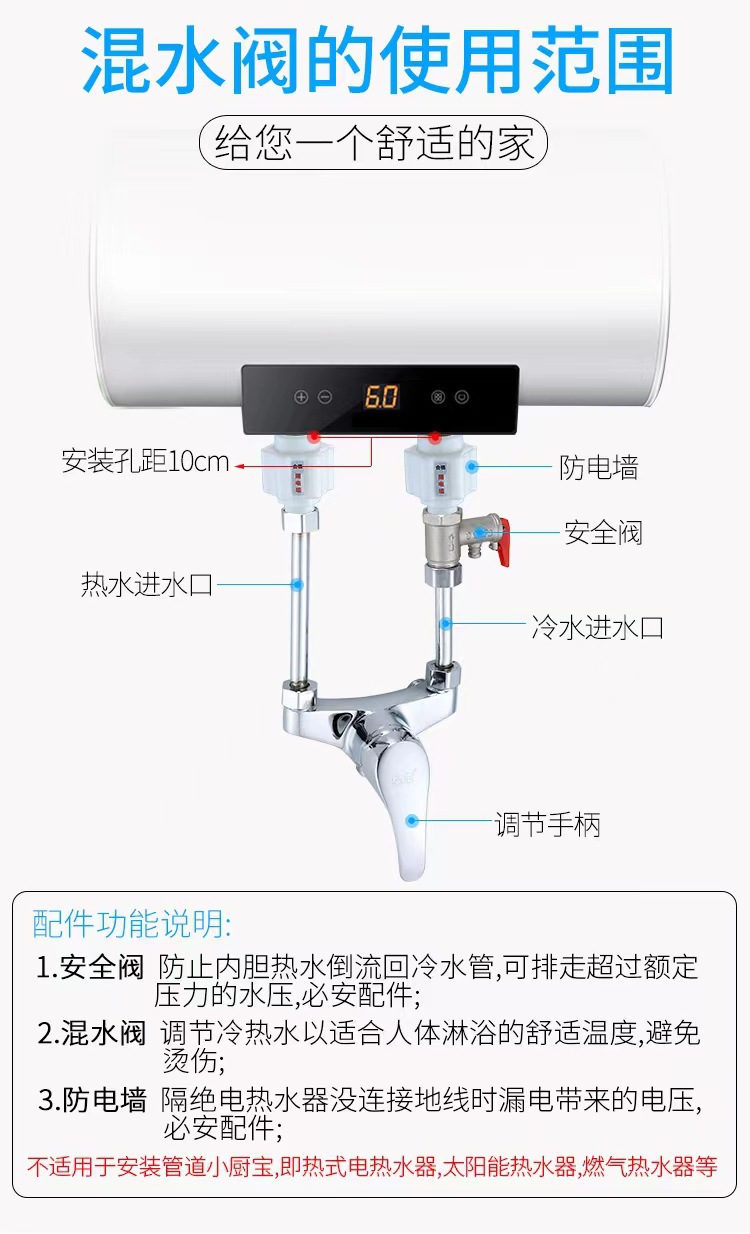全銅電気温水器専用u型混水弁浴室冷熱蛇口スイッチ弁部品大全共通