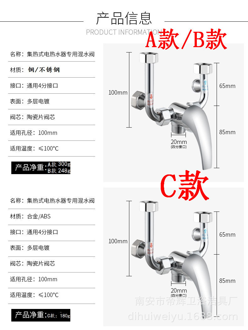 電気温水器u型混水弁全銅混水弁冷熱混合蛇口銅蛇口