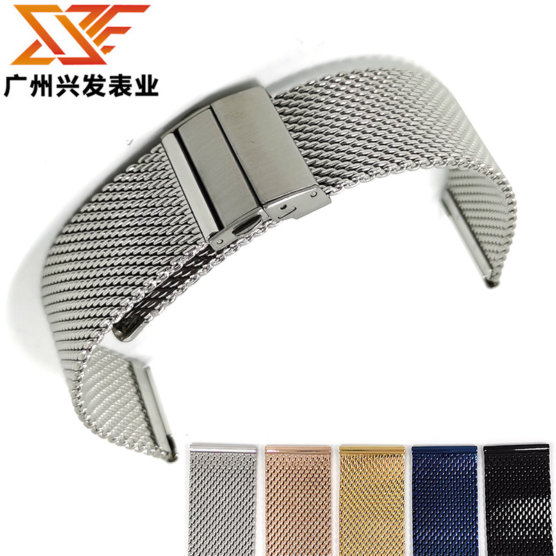 折りたたみバックル付きダブルスナップボタン 12 14 16 18 20 22 ミリメートルステンレス鋼 08 ラインミラネーゼメッシュストラップ時計バンド